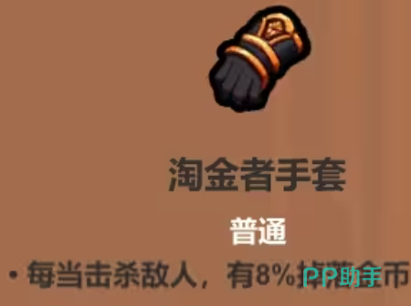淘金者系列:是一套装备,大家收集起来可以搭配起独特的经济循环效果,手套击杀敌人掉落金币,软甲拾取金币转化生命值,金杯进门获得额外金币增益,三者结合形成滚雪球般的资源积累。