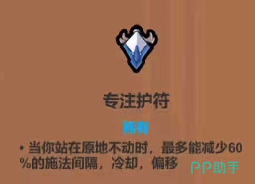 专注护符:为静默施法者量身定制的一个道具,原地驻留时光流转间,施法间隔、冷却时间与散射范围同步缩减,最终达成近乎永续的风暴,特别适合构筑炮台型法师体系。