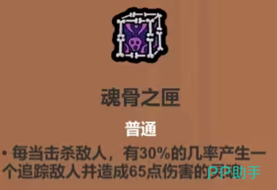 魂骨之匣:是一个可以跟与魂骨铠甲一起搭配使用的遗物,前者召唤追踪亡魂撕咬残敌,后者生成环绕护盾吸收伤害,二者联动形成攻防一体的屏障。