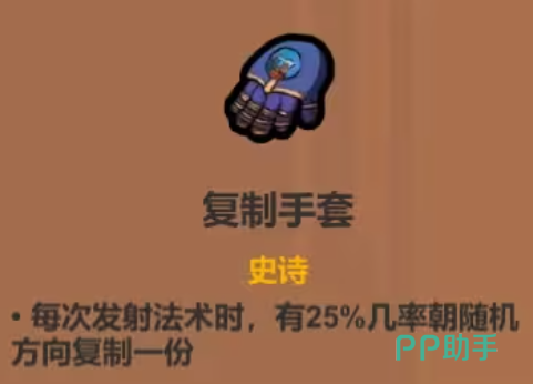 复制手套:每次法术发射都有几率分裂出随机方向的能量分身,这些不受控制的镜像攻击常常能在意想不到的角度洞穿敌阵。