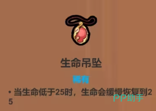 生命吊坠的设计机制聚焦于低血量状态下的持续回复能力。一旦生命值低于25%的临界点,遗物便会启动自动治疗效果,将角色从濒死边缘拉回。这一动态恢复系统不会受到治疗递减机制的影响,意味着只要维持在低血线,就能持续获得稳定的治疗收益,适合采用高风险高回报打法的玩家。