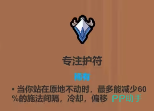 专注护符专为偏好站桩施法的法师职业打造。当角色静止不动进行法术吟唱时,该遗物可缩短技能冷却时间与施法间隔,使输出节奏更加紧凑。前期利用此特性可快速建立资源优势,但在后期复杂战斗环境中,站定施法的机会减少,建议作为过渡期核心装备使用,待阵容完善后替换为功能性更强的遗物。