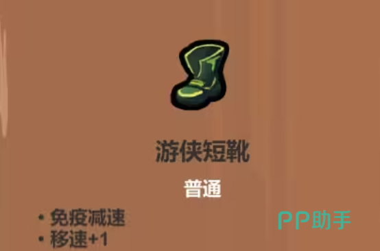 游侠短靴则是敏捷流派的核心配置之一,赋予角色极高的机动自由度。其免疫减速的特性使得玩家在冰冻区域或粘滞地形中依然能保持流畅移动,配合额外的移速加成,可实现灵活穿梭于密集弹幕之间。尤其推荐与具备多重射击能力的法杖组合使用,在高速位移的同时维持稳定输出,极大增强生存与清怪效率。