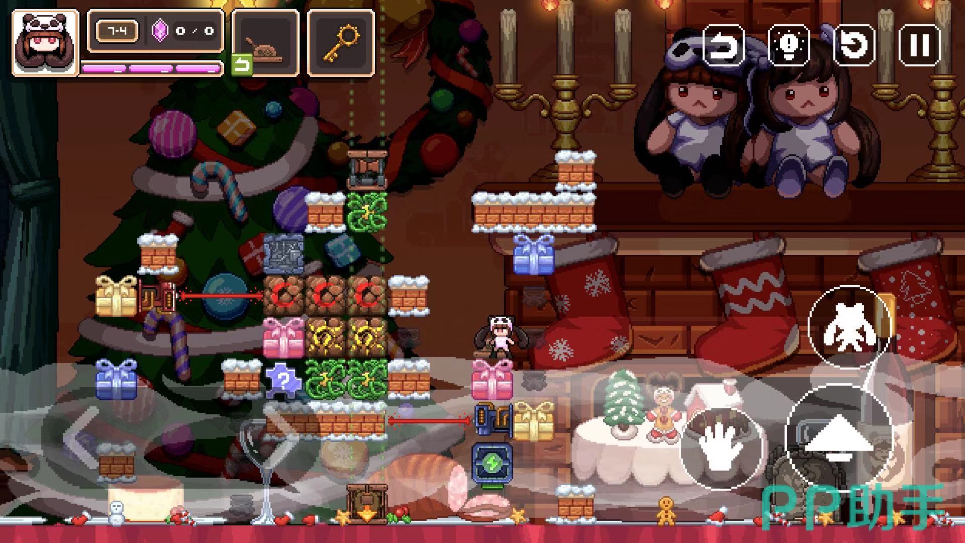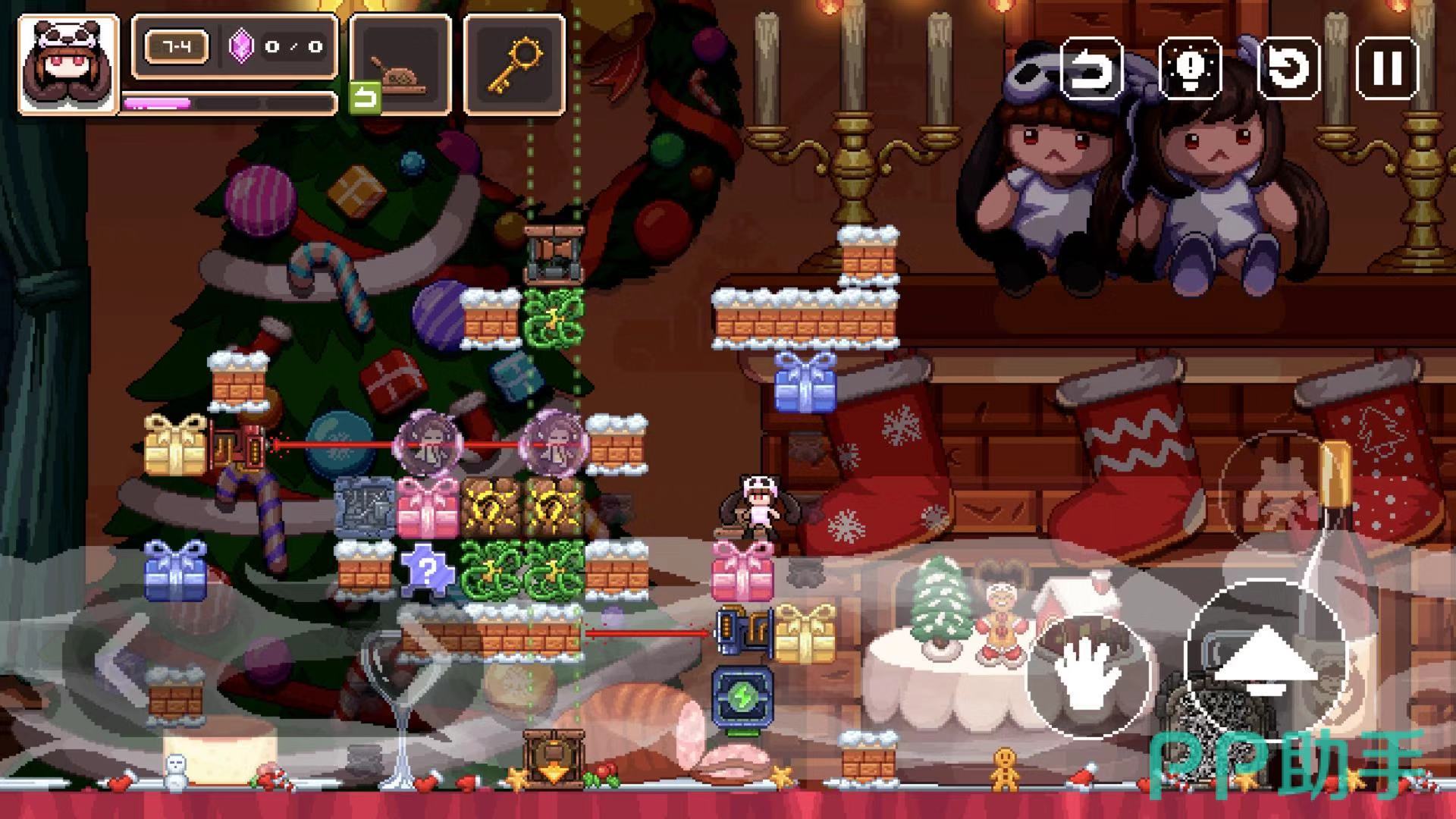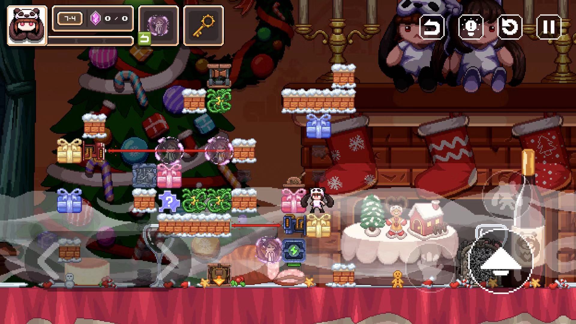 这次小编为玩家们带来幻境双生圣诞派对7-4怎么过的详细攻略,先看下图,右边的绿色机关控制旁边的激光,左边的激光就只能用其他物体来挡住了,这关的钥匙非常好拿,所以难点肯定是在问号碎片上面,下面一起看看圣诞派对7-4怎么过。