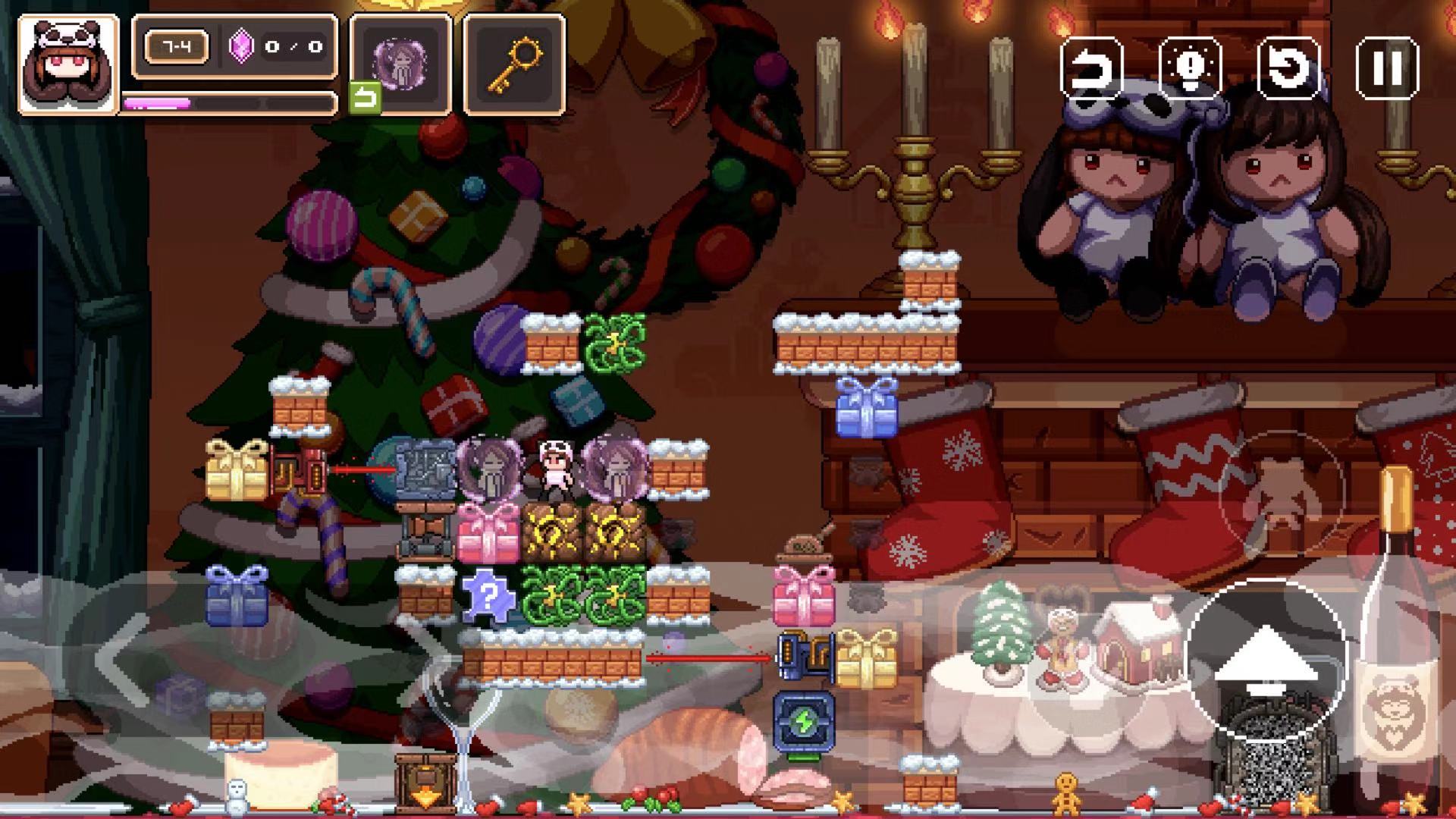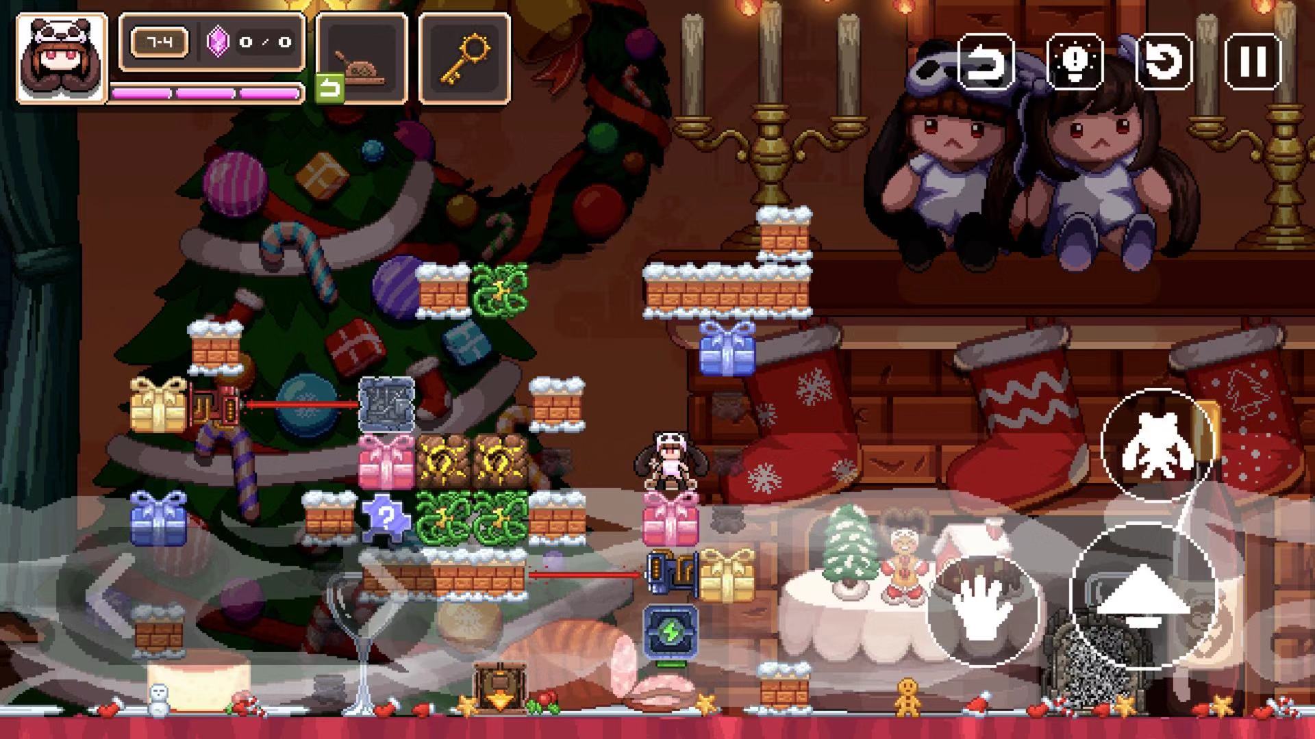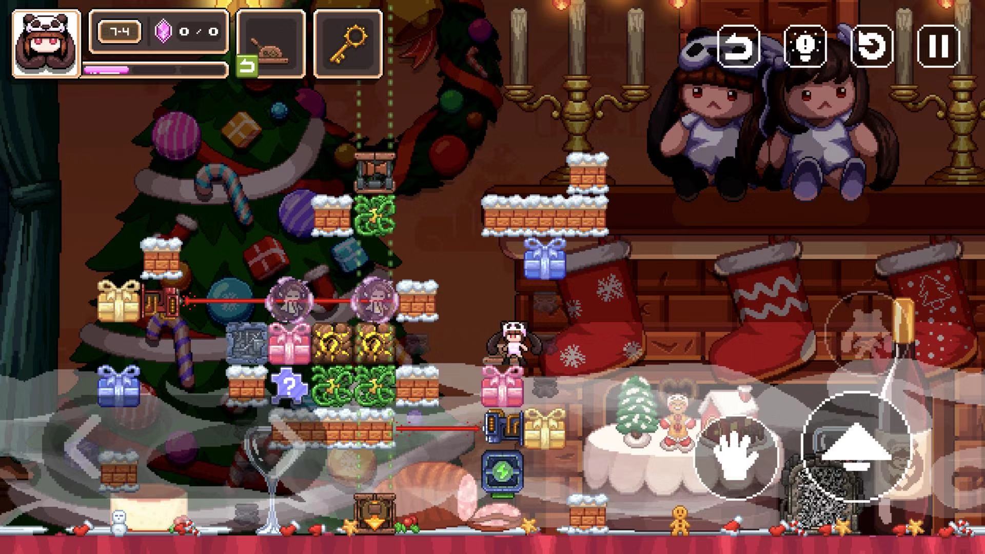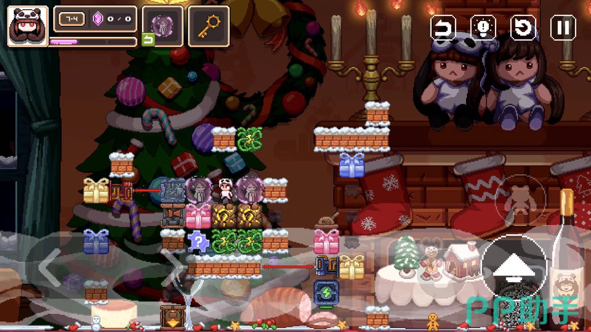 这次小编为玩家们带来幻境双生圣诞派对7-4怎么过的详细攻略,先看下图,右边的绿色机关控制旁边的激光,左边的激光就只能用其他物体来挡住了,这关的钥匙非常好拿,所以难点肯定是在问号碎片上面,下面一起看看圣诞派对7-4怎么过。