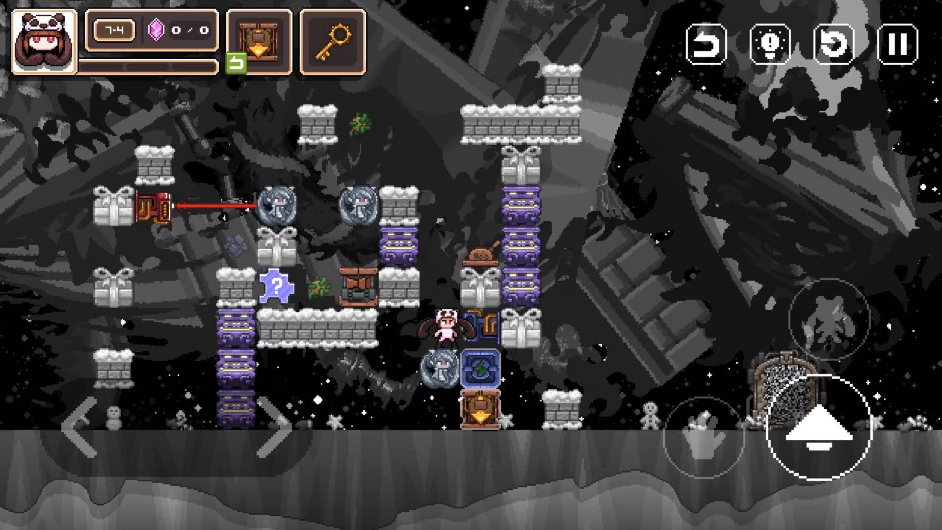 第一步:去右上角把钥匙给拿了,然后把蓝色木箱往左推2格,接着把发射木箱推到下图的位置并且打开开关,掉落的木箱在草地方块上,当我们进入里世界草地方块消失就可以砸碎红色箱子。
