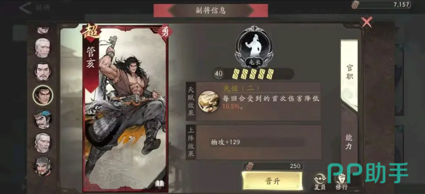 副将搭配方面,前期可使用韩浩作为过渡人选,其泛用性强,能有效辅助主将。后期建议替换为管亥,不仅能进一步提升队伍整体坦度,还可补充一定量的输出能力。此外,乐进自身拥有对设施增伤的被动技能,三阶解锁后,配合能施加异常状态的队友,可形成可观的协同输出。