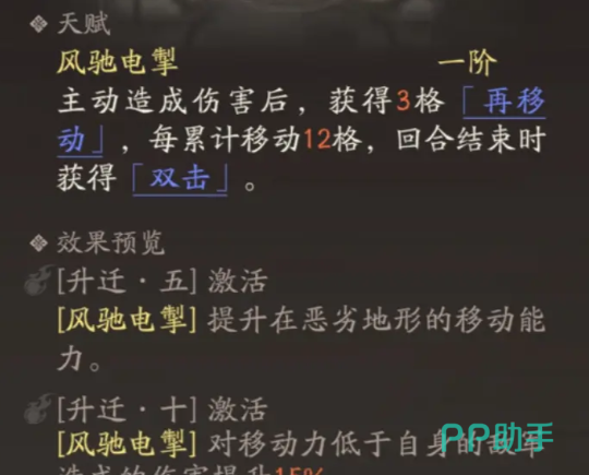 技能搭配方面,推荐配置御风、奔袭与弧光掠影。其中奔袭可对单体敌人造成120%的伤害,且每在攻击前移动1格,伤害提升4%,完美契合高移动力的加成机制;御风则能在本回合移动超过3格时,减少20%所受反击伤害,提升战场存活率;弧光掠影提供快速切入战场的能力,增强突袭效率。