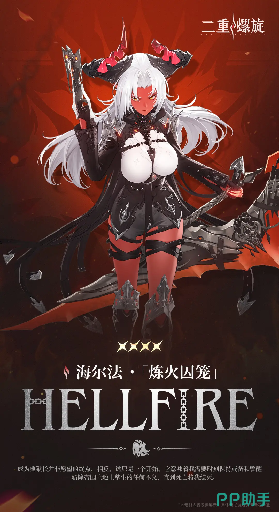 海尔法为四星火属性角色,兼具输出与生存能力,常作为前排坦克使用。她擅长操控重剑与榴炮类武器,技能围绕嘲讽、火属性伤害与防御强化构建。被动技能可持续提升自身生存属性,被动2进一步强化输出能力。主动技能方面,1技能可对敌人施加嘲讽并附加火伤;2技能提升自身防御力,同时对周围单位持续造成火属性伤害。她的“无烟火焰”效果还能提升火属性队友的攻击力,具备一定辅助价值。