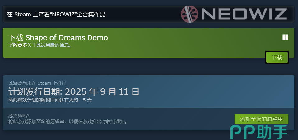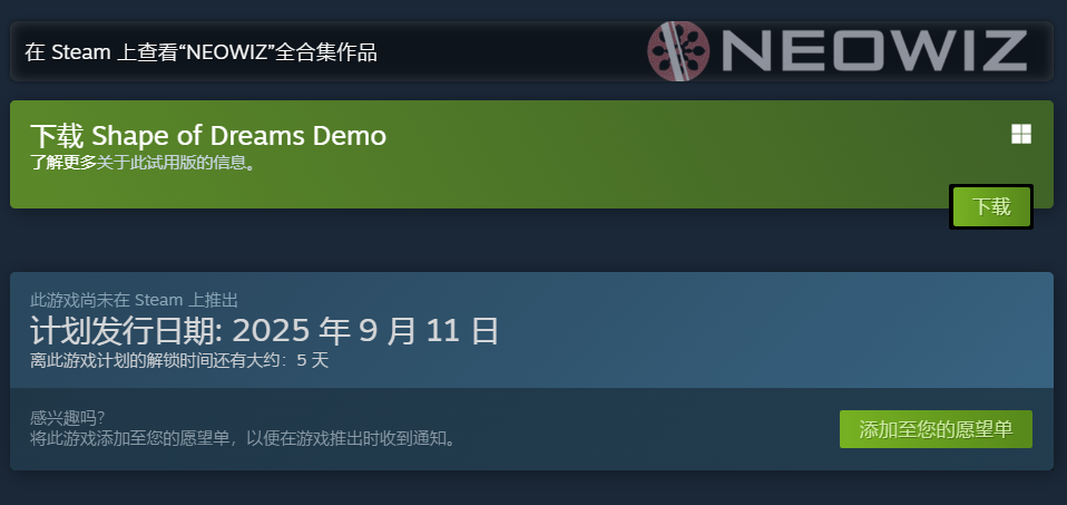 现在我们去steam上是可以看到这款新游的商店页面,英文名是《Shape of Dream》,不管用中文还是英文名称,都可以快速查找到。而且现在还有免费试玩版本,11号正式发售日之前,都可以玩下这个版本解解馋。