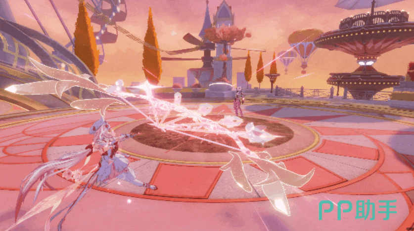使用武器技能可部署“爱愿之花”,再次激活则施展“心蕊初绽”,使花簇进入绽放状态并留下心形花丛。当技能等级达到最高阶“胜春”,或必杀技单次释放7根箭羽后,即可触发必杀连携,对敌人造成巨额冰冻元素伤害。