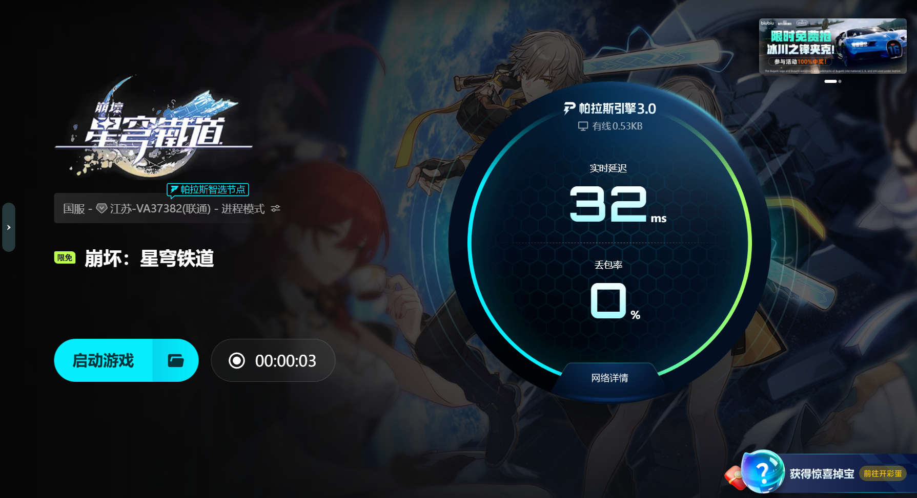 实际测试显示,在启用biubiu加速器后,《崩坏:星穹铁道》的启动效率和运行稳定性均有明显改善。原本耗时数分钟甚至无法完成的加载过程变得顺畅高效,角色模型与场景资源可快速加载完毕。无论是版本更新后的首次启动,还是高并发时段登录,均能顺利完成身份验证并进入游戏,有效避免黑屏或进度条冻结等问题。
