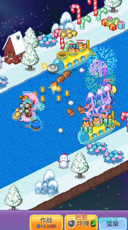 游戏内还有一个非常主要的刷钱策略,那就是参与到游戏的作战环节内,每一次作战,都需要玩家消耗13秒钟,同时,玩家也可以通过携带炸弹的方式,在海上漂流, 当炸弹命中敌方单位期间,可以掉落金币,玩家拾取时,还能够用于搭建自己基站的物料供给。