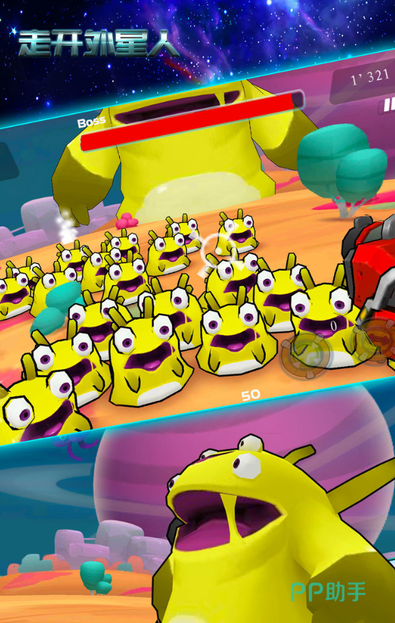 《走开外星人》是一款科幻风格的塔防游戏,玩家将会在游戏中化身成为地球的最后一道防线。开局你便能获得激光,火炮和子弹三种炮塔,击败敌人将会获取额外的经费,经费可以用来购买和升级炮塔。同时击败游戏当中的外星人,他们也有概率掉落激光或者电磁核弹塔,三座相同的防御塔能够合成进阶为高级激光塔。随着游戏的推进外星人也拥有了不断进化和吞噬的机制,他们会变得越来越强,玩家只有使用更加强大的科技武器才能够击败他们。