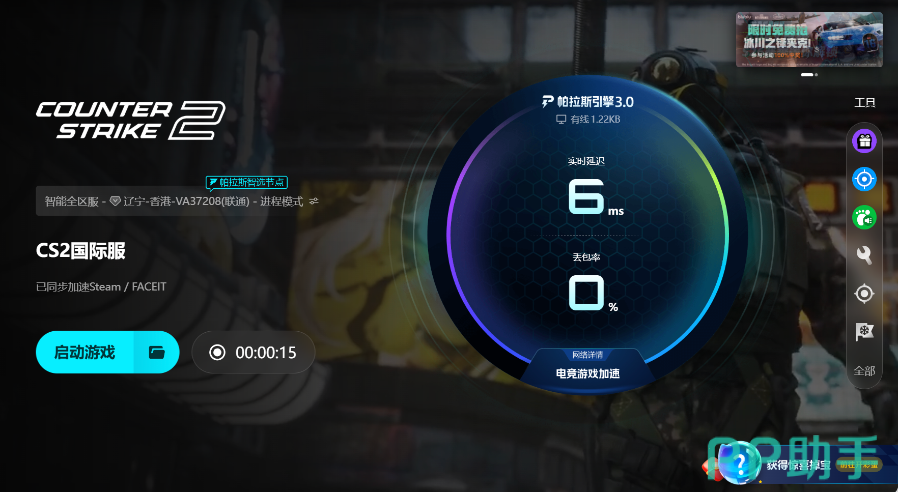 技术层面,biubiu加速器已全面升级至帕拉斯引擎3.0版本,具备智能路由选择与实时链路监测能力,可根据当前网络状态自动切换最优路径,避免因丢包或延迟激增导致的游戏中断。值得一提的是,职业FPS选手Aixleft作为biubiu产品体验官,深度参与了加速策略的调校工作,将职业赛场对低延迟与高稳定性的严苛标准融入优化方案,确保在高强度对战环境下仍能保持稳定连接。