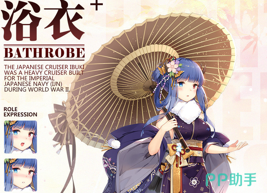 浅间的原型为计划中止的建造舰只,代号第301号舰,归类为伊吹级的后续舰。由于其历史背景较为特殊,未曾完工便终止建造,因此角色立绘整体呈现出一种孤寂与落寞的氛围,神情中透露出淡淡的哀伤。