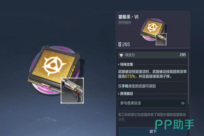 除了芯片之外,枪械插件同样不可忽视。“雷酸汞”作为一种功能性极强的附加组件,能够在战斗中显著提升攻击节奏。它不仅能加快子弹填充速度,还能借助武器被动技能造成额外消耗效果,尤其适用于连射频率高的枪型。想要获得这一配件,可通过参与游戏内限时活动或完成指定挑战任务,有一定概率直接获取。