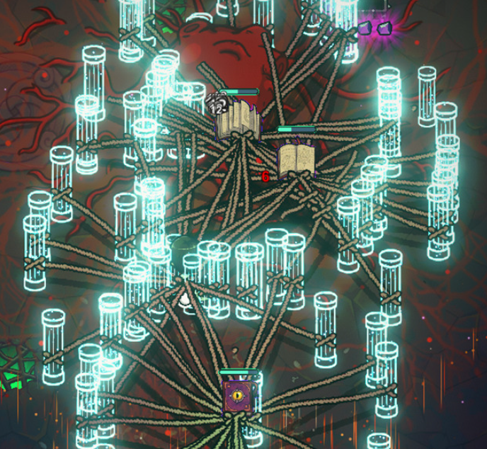 进入游戏中期后,建议逐步补充暴击率与伤害增幅类技能,以强化整体输出能力。若感觉光之柱与脐带的数量不足,可通过装备“魔导书”实现数量翻倍,大幅提升战场压制力。需要注意的是,“魔导书”属于关键增益道具,应尽量避免其过早失效或被破坏。