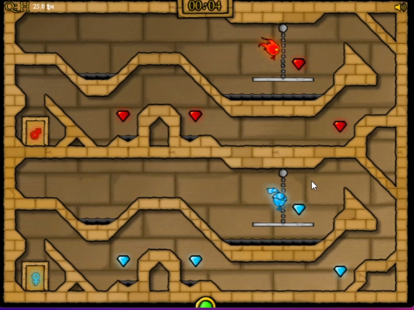 本作延续了经典的双人合作机制,玩家将分别操控冰属性与火属性的角色,在精心设计的洞穴关卡中并肩前行。每个机关都与角色特性紧密关联,只有合理利用两者能力差异,才能破解谜题、避开陷阱。途中散落的金币和钻石也值得收集,随着关卡推进,挑战难度逐步上升,考验操作与默契。