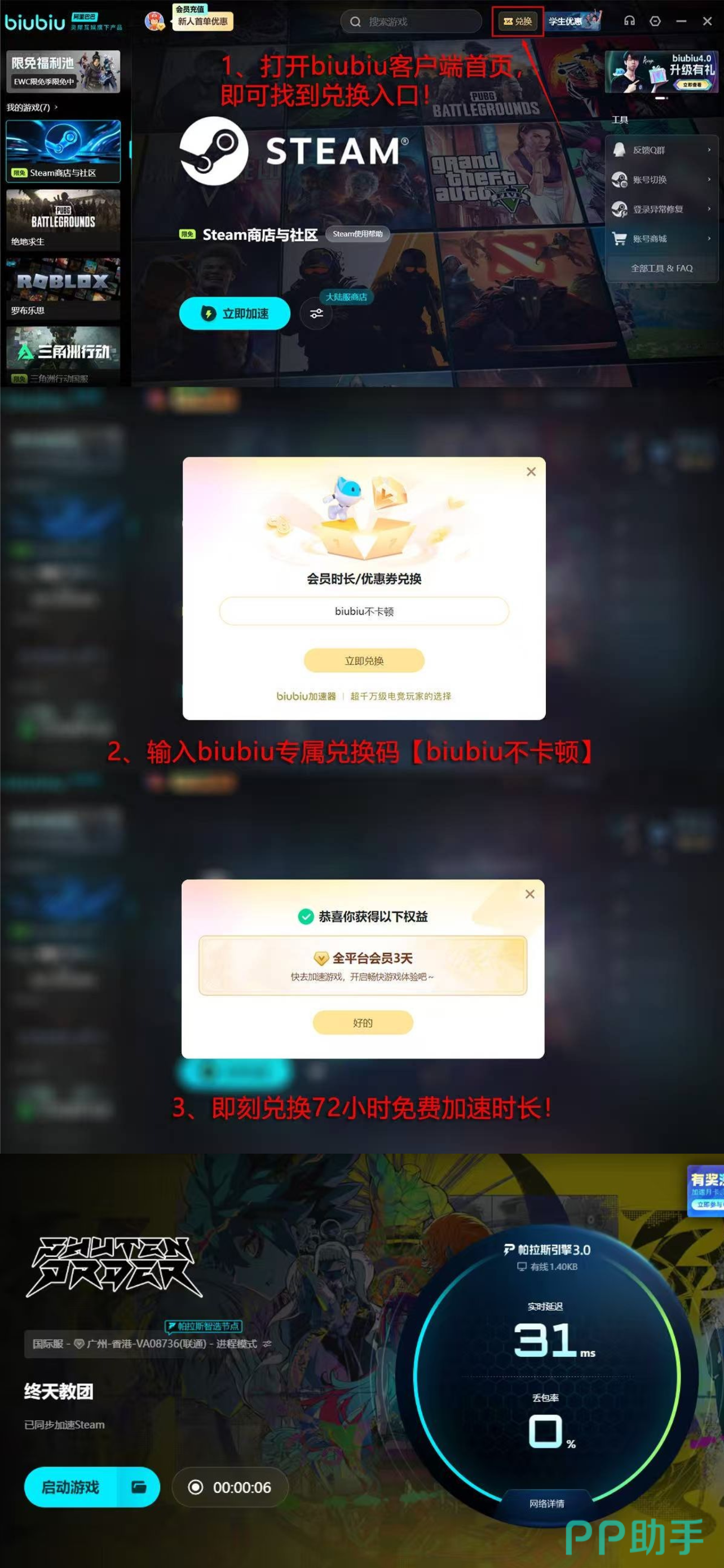 为了获得更流畅的下载与运行体验,建议在购买后使用网络优化工具进行连接加速。该工具支持对Steam平台进行专属提速,显著缩短游戏下载时间。新注册用户可直接享受24小时免费加速服务,同时平台还为其他用户额外赠送三天使用时长,只需在指定位置输入【biubiu不卡顿】即可领取。
