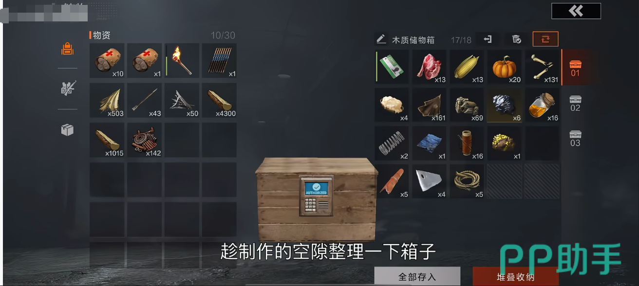 资源积累是生存的关键。木材用于搭建基础建筑,石头可升级防御结构,布料能制作医疗用品如绷带和睡袋。而废料则是核心流通资源,不仅用于解锁科技树,还能合成高级装备,并在安全区商店兑换稀缺物资。