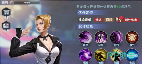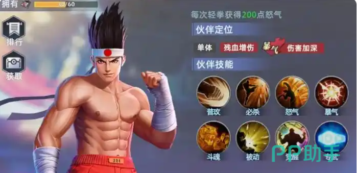 尽管东丈仅为R级角色,但他凭借鲜明的格斗家形象赢得了大量玩家的喜爱。当生命值降至50%以下时,他会自动进入“爆气”状态,持续两回合。在此期间,每次使用轻拳都能额外获得200点怒气,并且自身最终伤害提升5%,持续两轮。他的必杀技以单体目标为主,造成物理伤害;在爆气状态下,每损失20%的生命值,必杀技的暴击率就会增加5%。