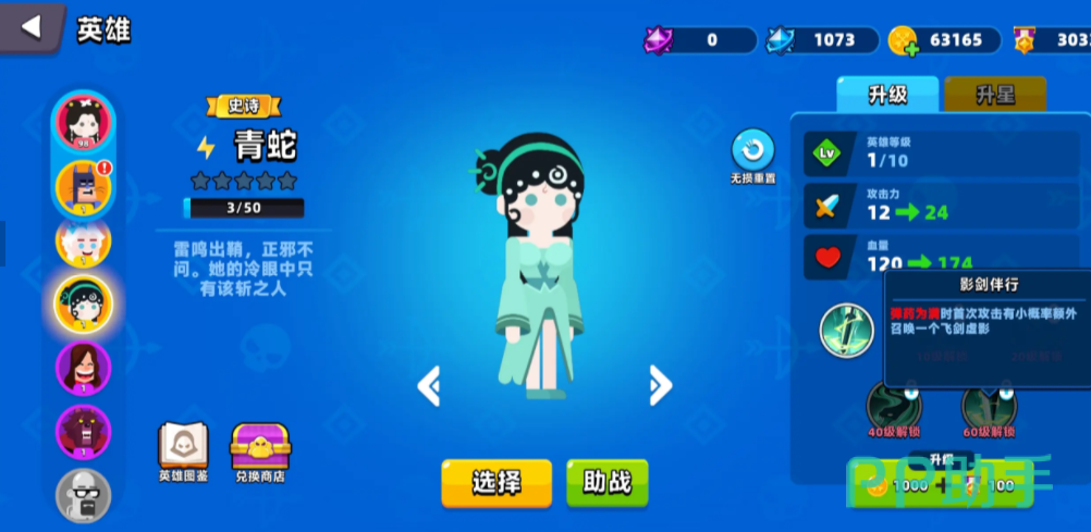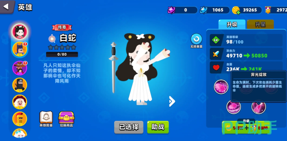 游戏中可供选择的英雄数量众多,每个角色都依据星级划分强度等级。其中,传奇品质的白蛇是值得优先培养的角色之一,可升至五星满级,最高可达100级。初始获取时为1级状态,随着等级提升,其攻击力与生命值均有显著增强。该角色操作简单,适合新手快速上手。战斗中,白蛇能够展开纸伞形成防护,有效抵挡来自远程的弹幕攻击,无论是面对PVP对手还是挑战BOSS,都能提供额外的生存保障。此外,青蛇同样是五星角色,但品质定位为史诗级,等级上限同样为100级,在整体强度上略逊于白蛇。