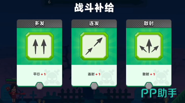 每局游戏开始时,系统会随机提供三个被动技能供玩家挑选。其中,“散射”是一个极具泛用性的选项,开启后每次发射的箭矢会在飞行过程中分裂成多支,大幅扩大攻击覆盖范围。即便未精准瞄准目标,也能通过广域打击命中多个敌人,特别适合应对高密度敌群。另一个值得考虑的是“追踪”技能,当该技能升级至S级后,箭矢将具备自动追踪敌人的能力。虽然在前期无法直接获得追踪效果,但随着等级提升,其精准打击远距离对手的能力将极大提升输出效率。