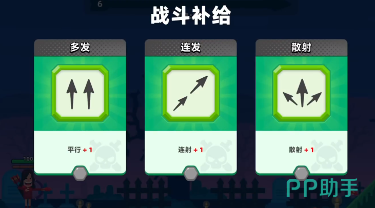 游戏开始阶段会随机提供三项被动技能供玩家挑选。其中,“散射”是一项极具战略价值的选择,开启后每次发射的箭矢会在空中分裂成多支,显著扩大攻击覆盖范围,即使未精准瞄准也能有效打击敌人。另一个值得考虑的是“追踪”技能,当该技能等级升至S级时,箭矢将具备自动追踪目标的能力。虽然初期不具备此功能,但随着升级,远程命中率将大幅提升,特别适合应对高速移动的对手。