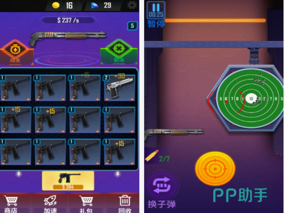 这是一款结合射击与合成机制的休闲小游戏。玩家需要使用各类枪械精准命中靶心,成功击中后可获得金币奖励。随着关卡推进,目标难度逐步提升,考验玩家的稳定性与点击精度。游戏内设有商店系统,可通过积累的金币解锁更多新型枪支,增强射击体验。整体操作简洁明了,适合低龄段玩家练习基础射击技巧。