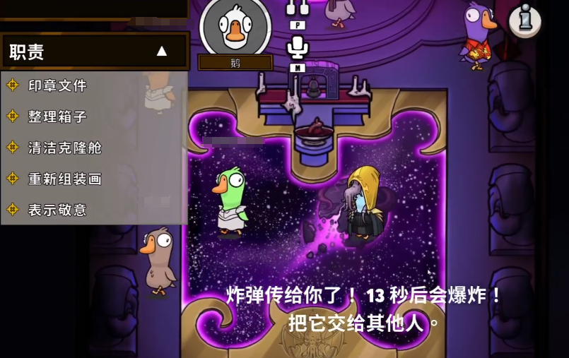 鹅鸭杀作为一款融合了策略对抗与趣味互动的社交推理游戏,不仅延续了传统狼人杀的核心玩法,还加入了独特的卡通场景与角色机制。在游戏中,玩家将扮演不同身份的角色,在地图中执行任务或执行特殊技能。其中,“传炸弹”是一项极具特色的操作,仅限特定角色使用——炸弹王。接下来的内容将详细介绍这一机制的具体实现方式和相关技巧。