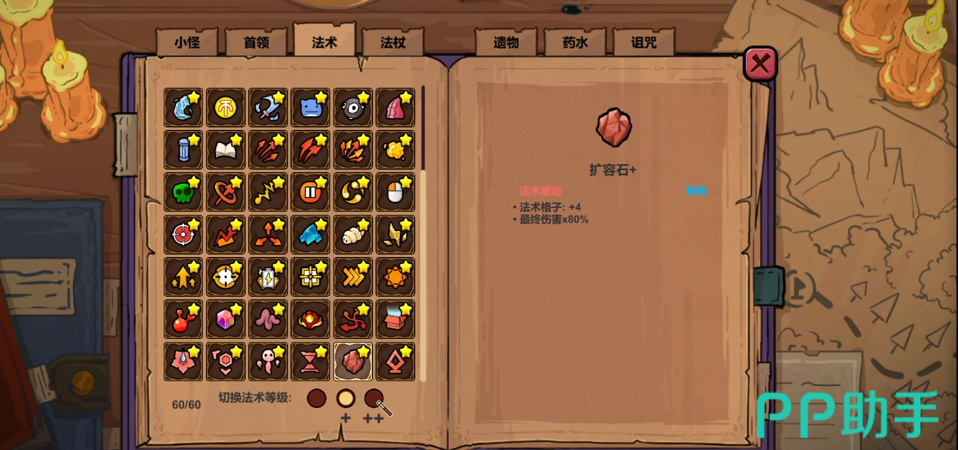 扩容石的核心作用是为角色的法杖扩展额外施法槽位,通常使用一次可增加三个新的法术格子,从而让玩家携带更多种类的技能进行搭配。然而,这项强化并非没有代价——启用扩容石会带来约30%的输出削弱。因此,是否选择使用该道具,必须结合自身角色的实际战斗能力来判断。对于输出足够强势的玩家来说,牺牲部分伤害换取更高的技能组合灵活性是值得的;但对于输出本就吃紧的流派,则可能适得其反。