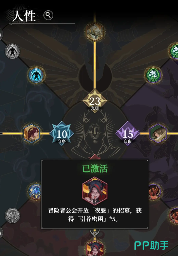 除了通过事件选项积累属性值外,完成特定任务或获取特殊物品也能带来人性加成。比如完成“水井里饥饿的魔鬼”这一任务后,可获得光明+1的奖励。若想查看当前各项人性的具体数值,可通过角色属性面板或前往审判庭进行确认。对于尚未明确路线规划的玩家,推荐按照自由4-混沌15-守序15-光明20-全20的分配路径推进,有助于顺利通关。