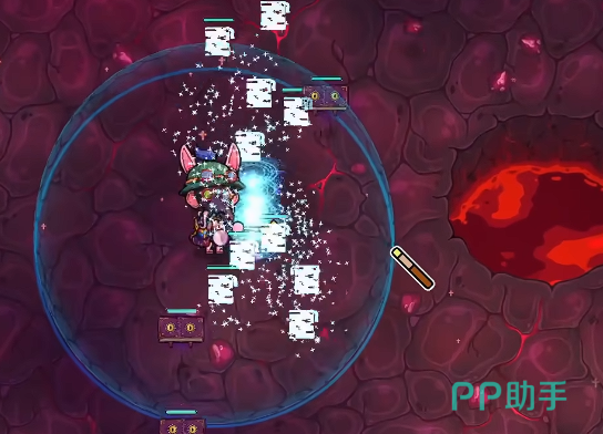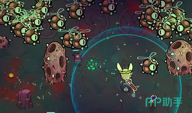 接下来是第二种常见流派——祭献流。此体系依赖牺牲自身生命值来换取强大的群体输出能力。推荐使用可增加召唤数量的法杖,搭配“吸血虫”与“虫巢”作为主输出法术,再结合“巨魔血清”和“分裂”来强化召唤密度与续航能力。每当召唤出的虫类单位自爆后,不仅能造成范围伤害,还能返还一定生命值,从而形成稳定的攻防闭环。