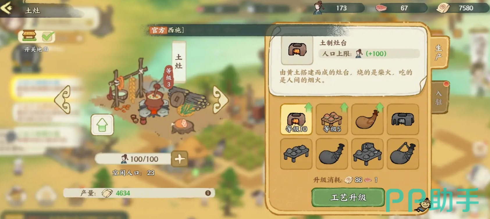 各类建筑承担不同资源产出职能:庖厨生产食物,畜牧场提供肉类,二者均可用于科技研发;伐木场生成木材,采矿场获取矿石,这两类资源主要用于建筑升级和历法台科技提升;商铺与食肆则产出铜钱,用于名士培养和练兵,直接增强战斗力。前期应合理分配人口与加成名士至急需资源的建筑中。历法台科技分为资源增益与战斗强化两类,建议新手优先投资资源产出类科技,以夯实发展基础。