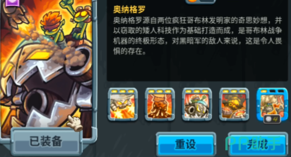 奥纳格鲁是机械类英雄,具备强大的持续输出与控场能力。一技能“哥布林”召唤两架无人机协助攻击,每次打击均造成可观物理伤害。二技能“焦油炸弹”沿路径投掷沥青弹,使命中敌人在7秒内减速50%。三技能“冲击猛撞”使机甲撞击地面,对周围单位造成伤害并短暂眩晕。四技能“地雷部署”在指定路径布置4枚地雷,触发时造成范围爆炸伤害。大招“死神天降”召唤哥布林飞艇对区域敌人进行持续轰炸,每次攻击均造成真实伤害,适合应对大规模敌军推进。