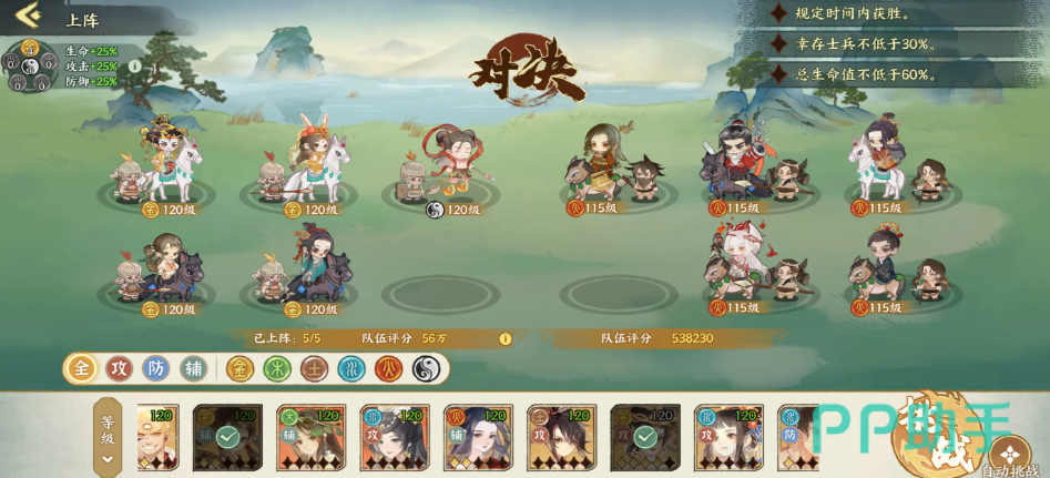 名士根据品阶划分为天、地、玄、黄四个等级,其中“天”阶为最高稀有度,拥有更强的基础属性和技能效果;“黄”阶则多用于前期过渡。属性方面包含金、木、水、火、土五种元素,彼此之间存在克制关系:金克木、木克土、土克水、水克火、火克金。此外还设有“两仪”属性,该属性不参与克制循环,也不会被其他属性克制,同时可作为任意属性计入队伍加成。当同属性名士上阵达到3人时,全队获得10%攻击、生命与防御加成;4人时提升至15%;5人时高达25%。两仪单位可灵活补位,适配任何属性组合。