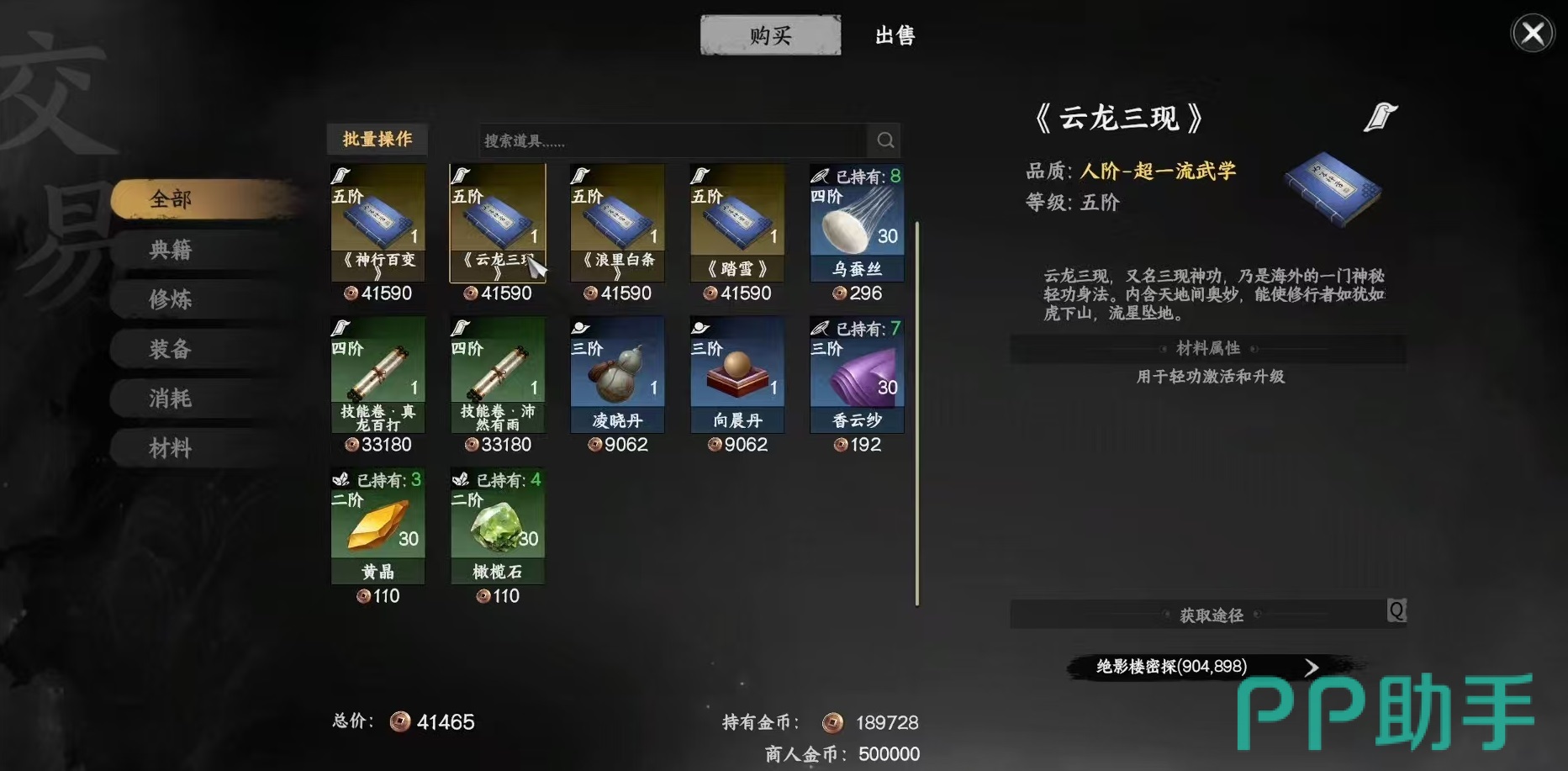获取轻功的主要途径包括商城购买与任务奖励两种。其中,通过绝影楼密探购买是一种高效方式。该NPC位于地图坐标904、899处的枰栌区域,与其对话后可解锁多个金色品质轻功,如神行百变、云龙三现、浪里白条以及踏雪。这些轻功具备优异的属性加成与实战表现,适合中后期全面升级身法体系时优先兑换。需要注意的是,该功能需推进主线剧情至特定阶段才会开放,因此前期仍需依赖其他方式补充轻功配置。