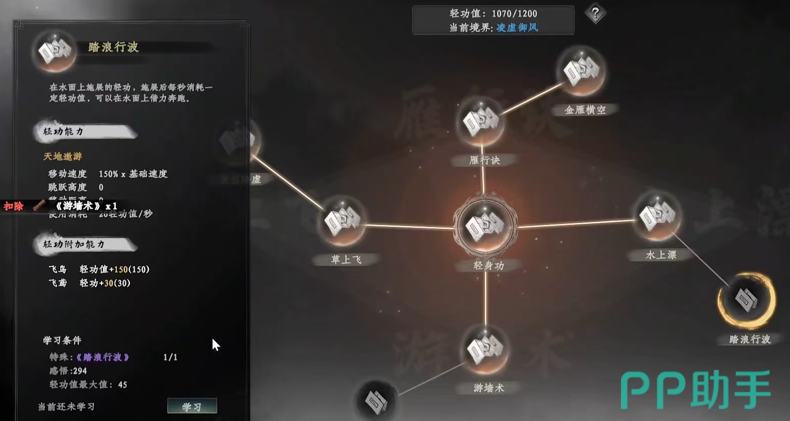 游戏中可习得的轻功种类丰富,每种都有其独特应用场景。以云龙三现为例,作为金色稀有轻功,它支持三段空中跳跃,并拥有极高的飞行速度,特别适用于跨越峡谷、河流等复杂地形,显著提升大地图穿梭效率。草上飞则是基础陆地加速类轻功,施展后大幅提升角色地面移动速度,适合前期日常跑图使用。而踏浪行波则专为水域设计,允许角色在水面持续奔跑,对于需要频繁穿越江河的任务路线而言极为关键。