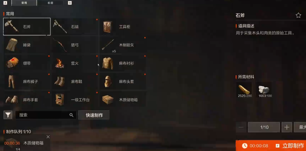 从玩家进入荒岛的那一刻起便开启了一场真实求生之旅。资源采集是基础,需要通过砍伐木材、采掘石矿,或收集纤维和废料,获取制作工具和建筑材料;野果、猎物、河水则保证饥饿与口渴的基本需求。前期优先制作石斧、石镐能够快速提升资源采集效率,而睡袋作为必备道具,可以作为临时复活点,避免返乡重走太远路。持续的生存压力要求玩家灵活管理状态。饥饿和口渴需要靠食物和水来维持,夜间、或是遇到恶劣天气体温会降低,必须要有火把、篝火或防寒装备保持温暖。与此同时,制作绷带用于回血是基本的恢复手段,后期则依赖医疗包等高级道具提升生存能力。