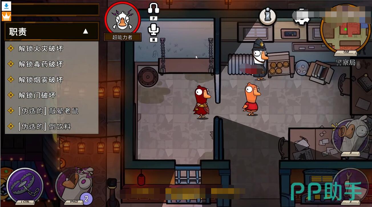 鹅阵营的超能力者是个被动防御角色。他的特殊能力是能自动打断鸭子使用"千里眼"和"心灵感应"这两种破坏技能。不过每次打断后,鸭子在短时间内会看到你的位置标记。因为这个技能没有明显提示,所以平时明显提示,所以平时要装作普通鹅的样子专心做任务。最好和通灵鹅、侦探这些能获取信息的角色一起行动,人多比较安全。要特别注意避开实验室、雾洞这些鸭子常去搞破坏的地方。实在需要证明身份的时候,可以假装自己是工程师或者观鸟者。