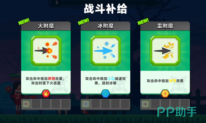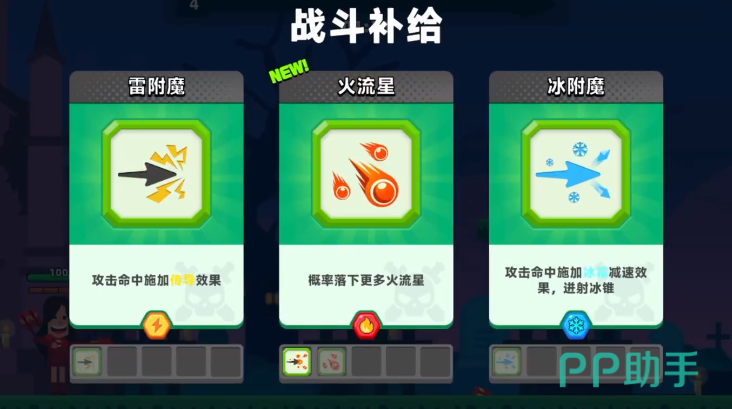 进入游戏后,玩家可参与多种模式挑战,其中最受欢迎的是标准对战模式。在横版推进的过程中,敌人会不断从各个方向出现,玩家需通过抛物线轨迹发射箭矢进行打击。这种机制降低了对实时瞄准精度的要求,更加注重预判与角度调整。战斗中会随机掉落三种不同类型的技能供选择,每次只能从中选取一项,所选技能将立即增强角色能力,但持续时间有限,结束后角色将恢复基础状态。