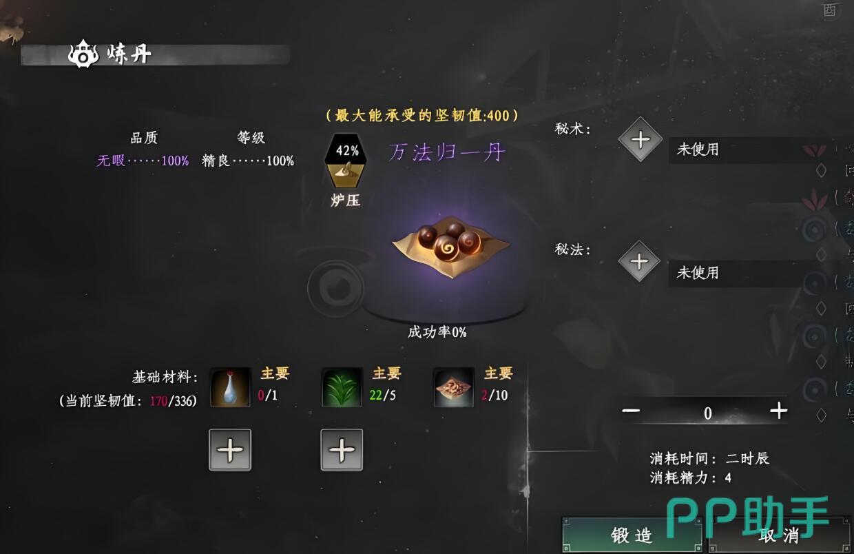 获得配方后会发现,学习该功法存在前置条件——玩家必须将炼丹等级提升至3级方可进行后续操作。若当前炼丹技能未达标,可通过反复炼制基础丹药来积累经验,逐步升级。当炼丹技艺达到要求后,便可着手准备炼制万法归一丹所需的三种材料:1份血狼精血、5份兰草以及10份白芨。其中兰草和白芨属于常见药材,在游戏早期探索过程中便有机会采集到部分资源。若数量不足,可在野外山坡、树林等植被茂密地带继续搜寻。