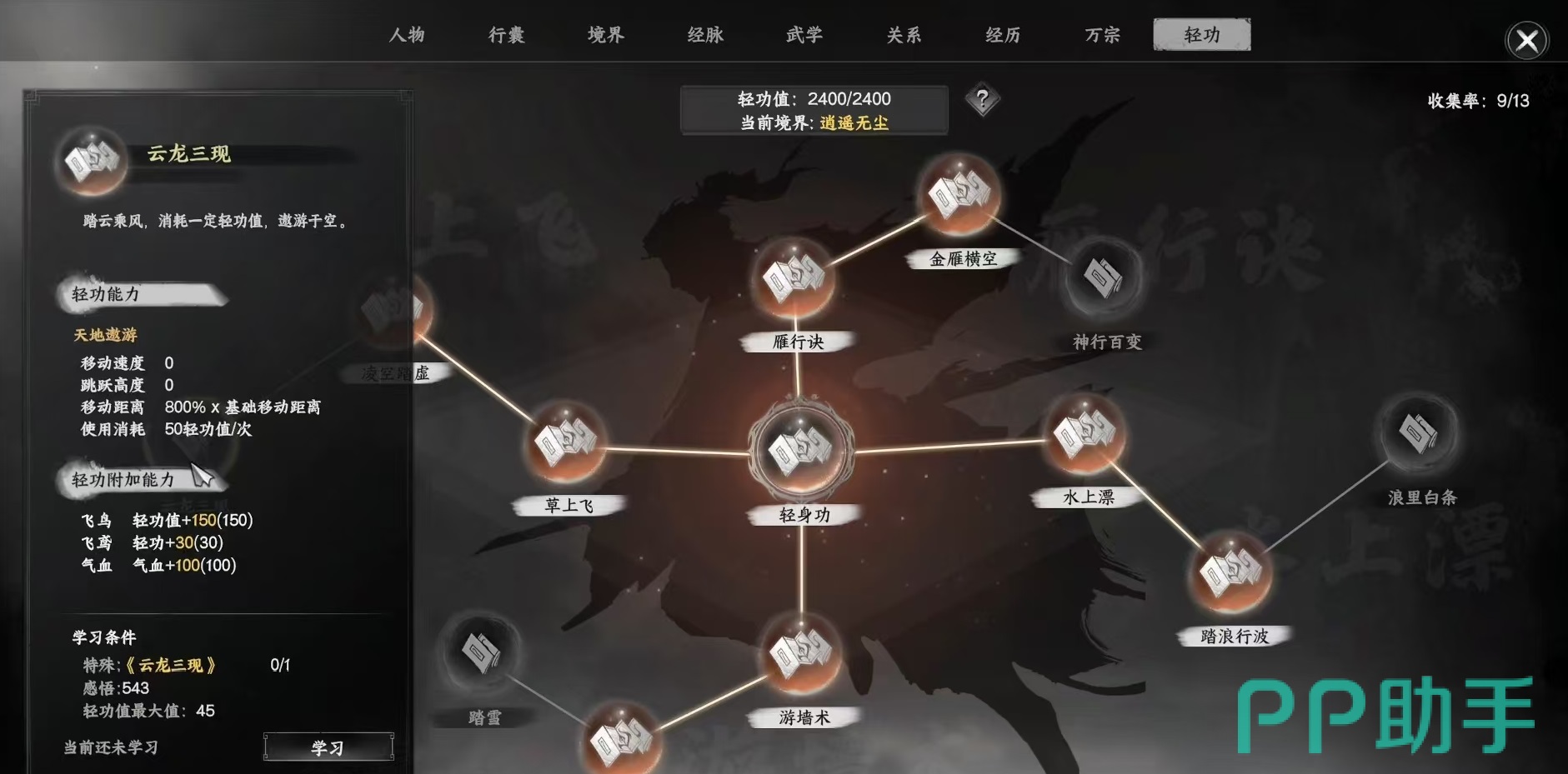 需要注意的是,该NPC仅在玩家推进主线剧情至解锁平庐城探索权限后才会激活交易功能。此外,云龙三现售价较高,需提前通过完成支线任务、收集资源出售或参与门派活动积累足够资金。学习成功后,角色将获得显著的属性加成,包括额外提升轻功值与最大气血量,进一步增强生存能力与机动性能。