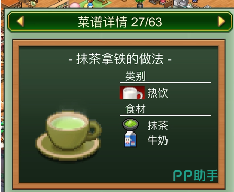 游戏进入中期后,热饮品类将陆续开放。茶拿铁结合抹茶与牛奶,不仅口感细腻,外观也十分精致,是热饮中的畅销单品。可可饮品以可可和牛奶粉为主要原料,甜度适中不腻口。热奶昔则需要牛奶与蛋黄组合,质地绵密,非常适合冬季供应。
