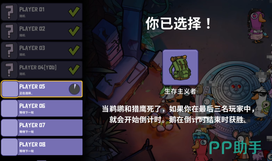 鹅鸭杀生存主义者技能什么样?这款游戏注重社交互动与逻辑推理,整体操作并不复杂,但对玩家的判断力和思维清晰度有一定要求。每个角色都有其独特的功能,而生存主义者在好人阵营中扮演着关键角色,能够为团队争取主动权。许多新人玩家还不了解这个职业的具体用法,下面将全面解析其技能机制与实战策略。