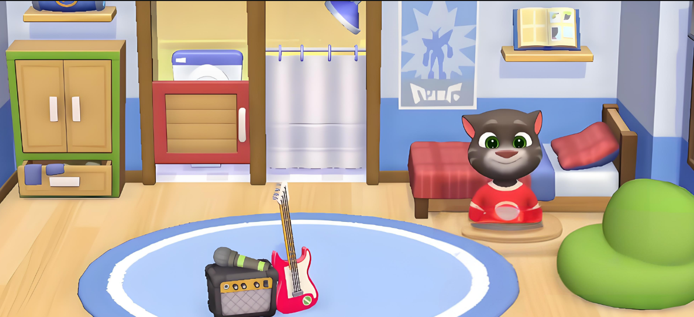 除了基础的养成内容外,游戏还拓展了多种高自由度的活动场景。你可以带汤姆猫前往公园散步游玩,享受户外时光;也可以陪它在泳池中洗澡放松,期间还能使用平板观看节目,增添休闲乐趣。喜欢运动的玩家还可以邀请好友一起参与投篮挑战,体验轻松竞技的乐趣。此外,滑板竞速、割草机比赛等全新互动小游戏也被引入其中,大大增强了游戏的可玩性与社交属性。