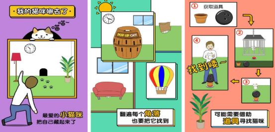 猫咪正在与主人进行躲猫猫以及捉迷藏,对面对消失不见的小猫咪,要学会利用不同的方式寻找,尤其采用较为出色的手绘画风,将捉迷藏与冒险等多种模式完美地结合在一起,将开启一场非常独特的寻猫之旅。在寻找猫咪的过程当中,可以任意点击不同的位置,这样有机会获得丰厚的道具,合理使用这些道具,能够获得相应的提示,在短时间内寻找到猫咪。