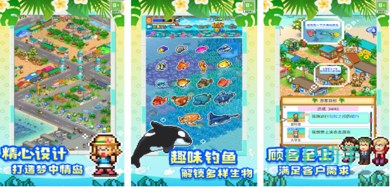 围绕着海岛经营题材进行创作,您在游戏中将会看到荒无人烟的岛屿以及一望无际的大海,在海洋中也会面临着很多神奇的海洋生物,有众多海洋生物都等待通过逐渐解锁的方式来拥有,并且营造出特别美丽的海岛世界,还可根据自己的喜好打造出梦中情岛。在创作海岛的过程当中,需要根据自己的想象力从而放置各种装饰品,吸引更多的游客。