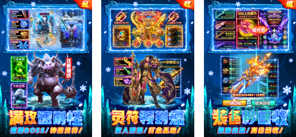 本作是款具备超多免费福利的良心冰雪版传奇手游,具备怀旧的美术表现给人8090年代的既视感,攻速超快可以快速清关并获取多种多样的资源,免费的宝石、元宝拿到手软可兑换更多的道具,还可以秒回收各种装备带来绝佳的新鲜感,全新演绎的传奇故事章节也丰富了传奇系列的世界观。